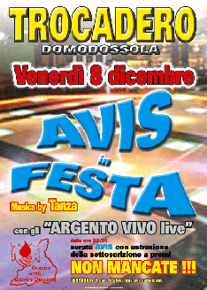 Venerdì 8 dicembre presso la discoteca Trocadero ci sarà la vesta Avis organizzata dal GRUPPO GIOVANI AVIS OSSOLANA.